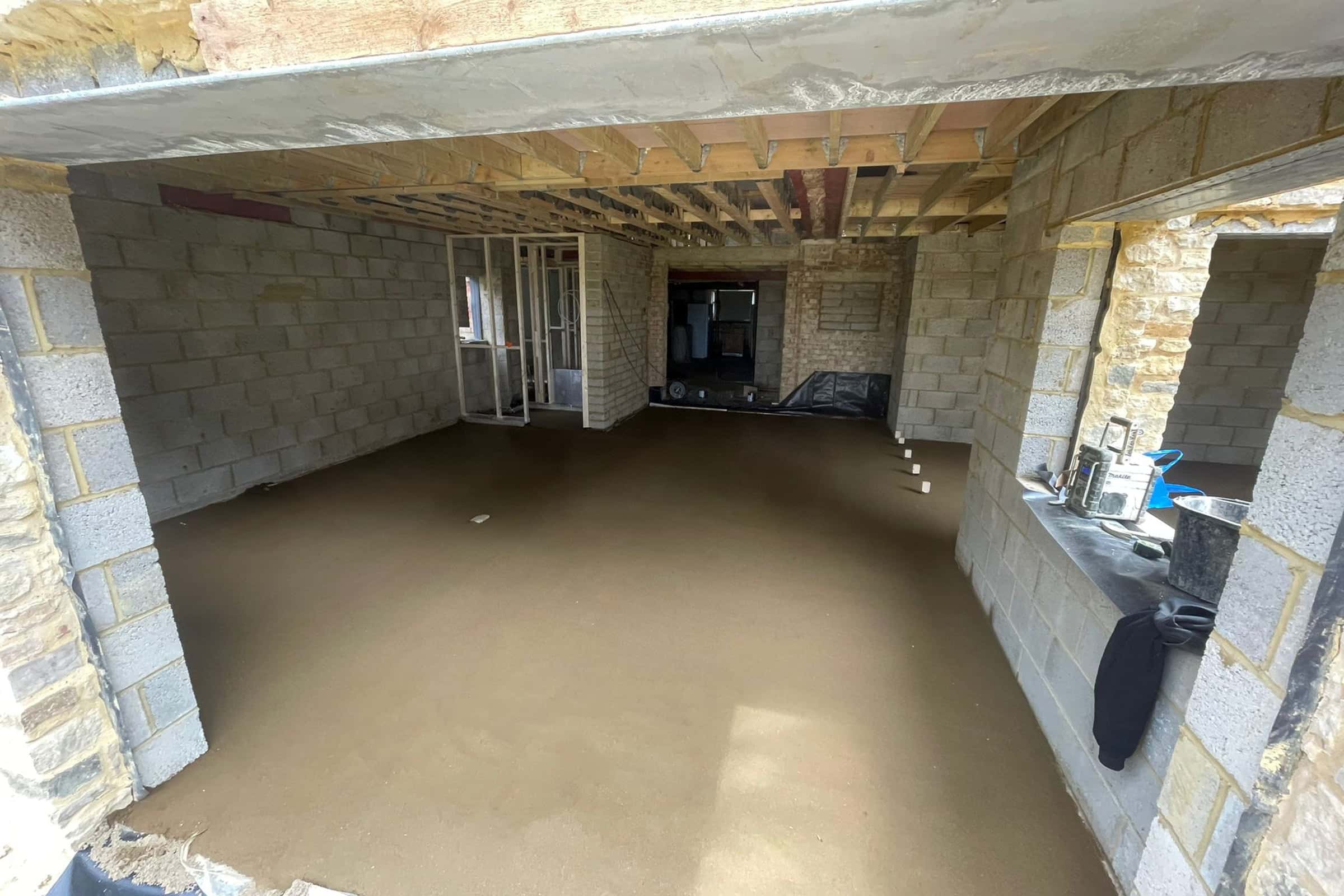 Floor screeding at a new build property in Olney, Buckinghamshire.