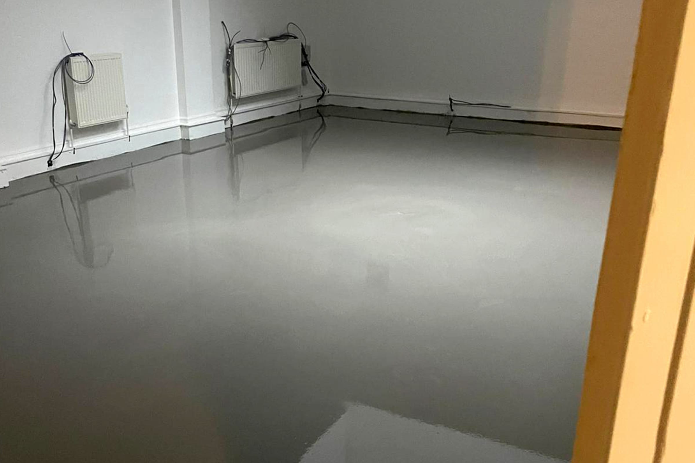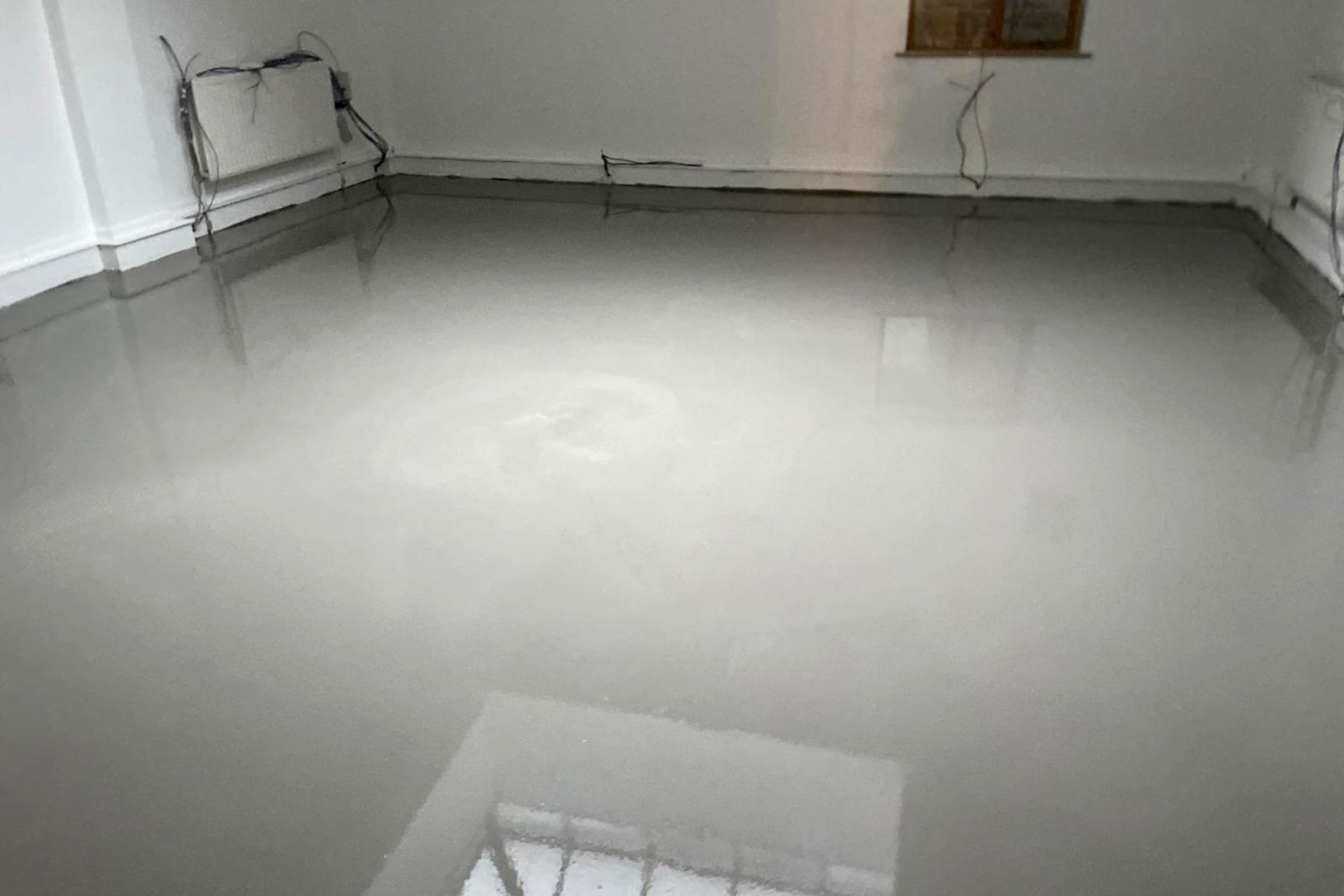 56㎡ self-levelling latex screed in Royston, Hertfordshire.